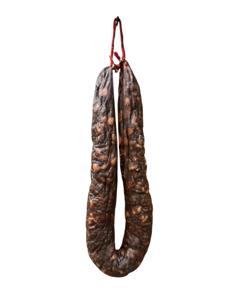 Gustativement, le Figatellu se distingue par sa texture moelleuse et son caractère affirmé. Il se savoure aussi bien grillé au feu de bois, légèrement croustillant à l'extérieur et fondant à cœur, qu'en tranche crues dans des recettes traditionnelle ou simplement accompagné d'un bon pain et d'un verre de vin corse.